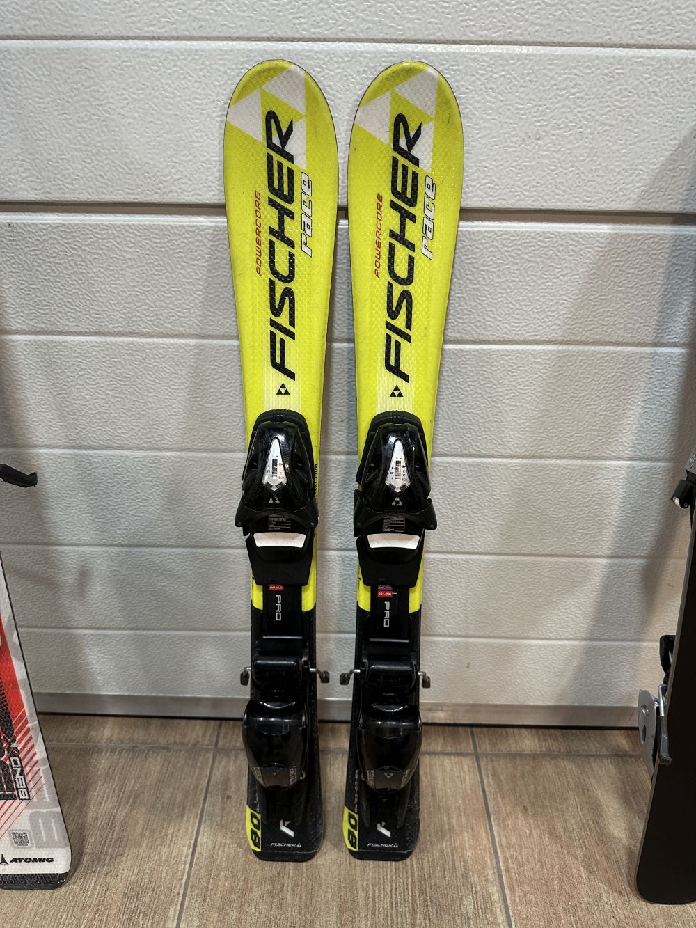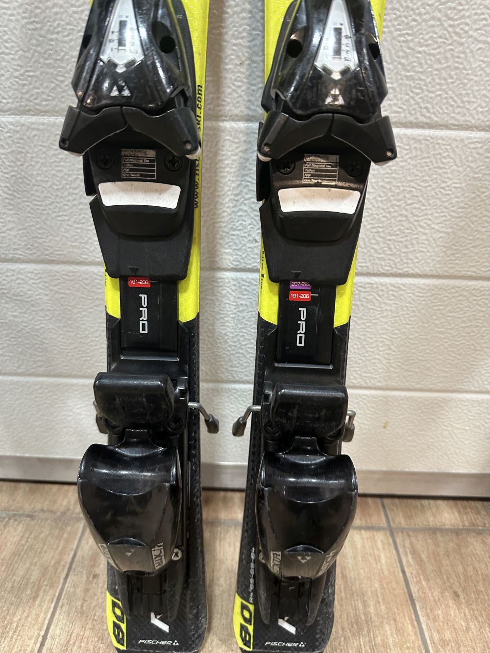 Fischer kötéssel ami bármekkora méretben állítható és 65kg-ig terhelhető.