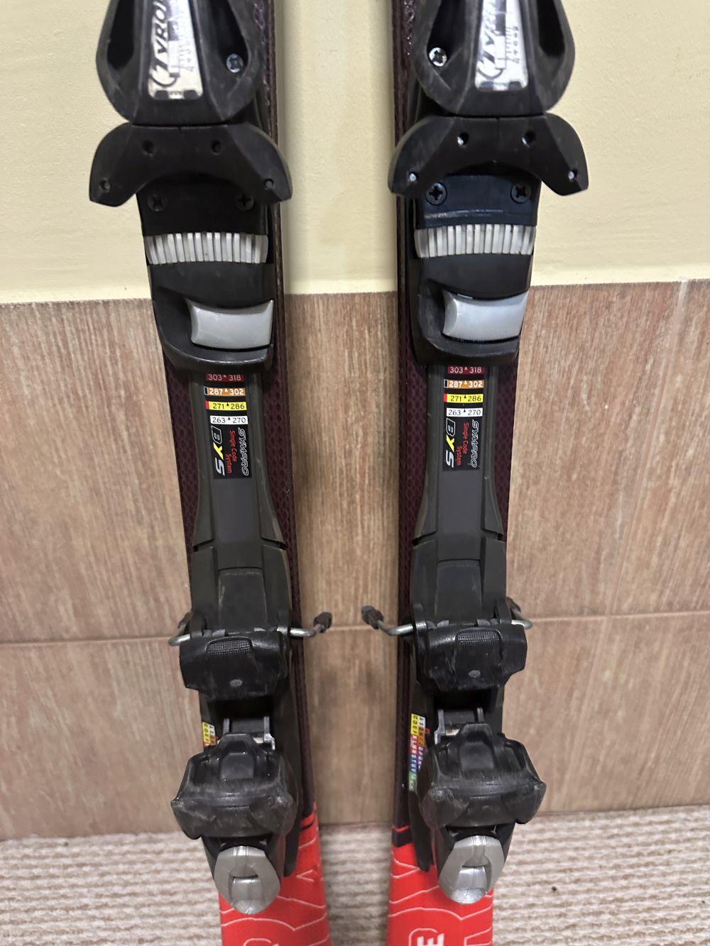 Tyrolia kötéssel ami bármekkora méretben állítható 120kg-ig terhelhető.