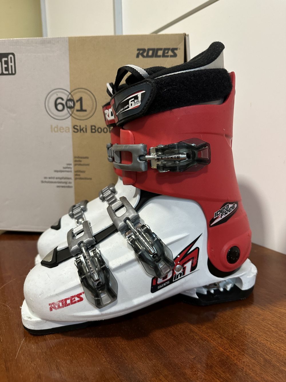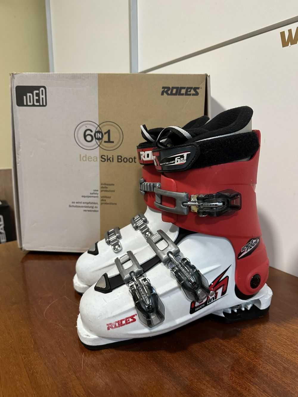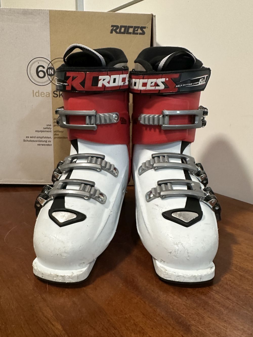 Jó állapotú síbakancs gyári dobozában.