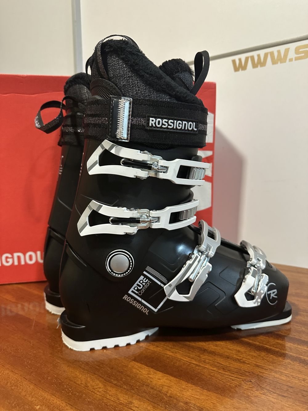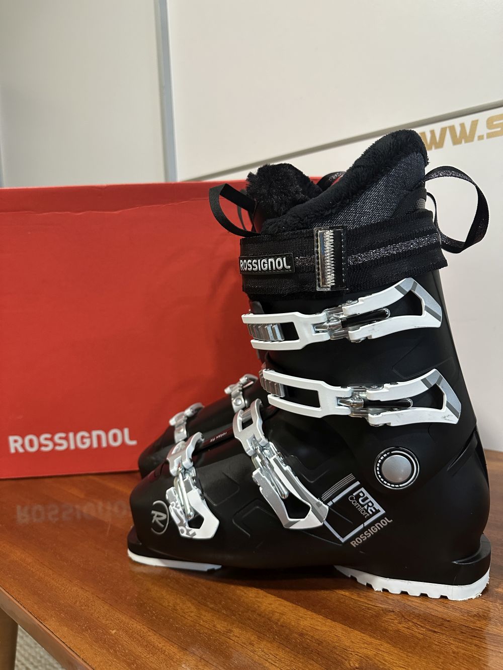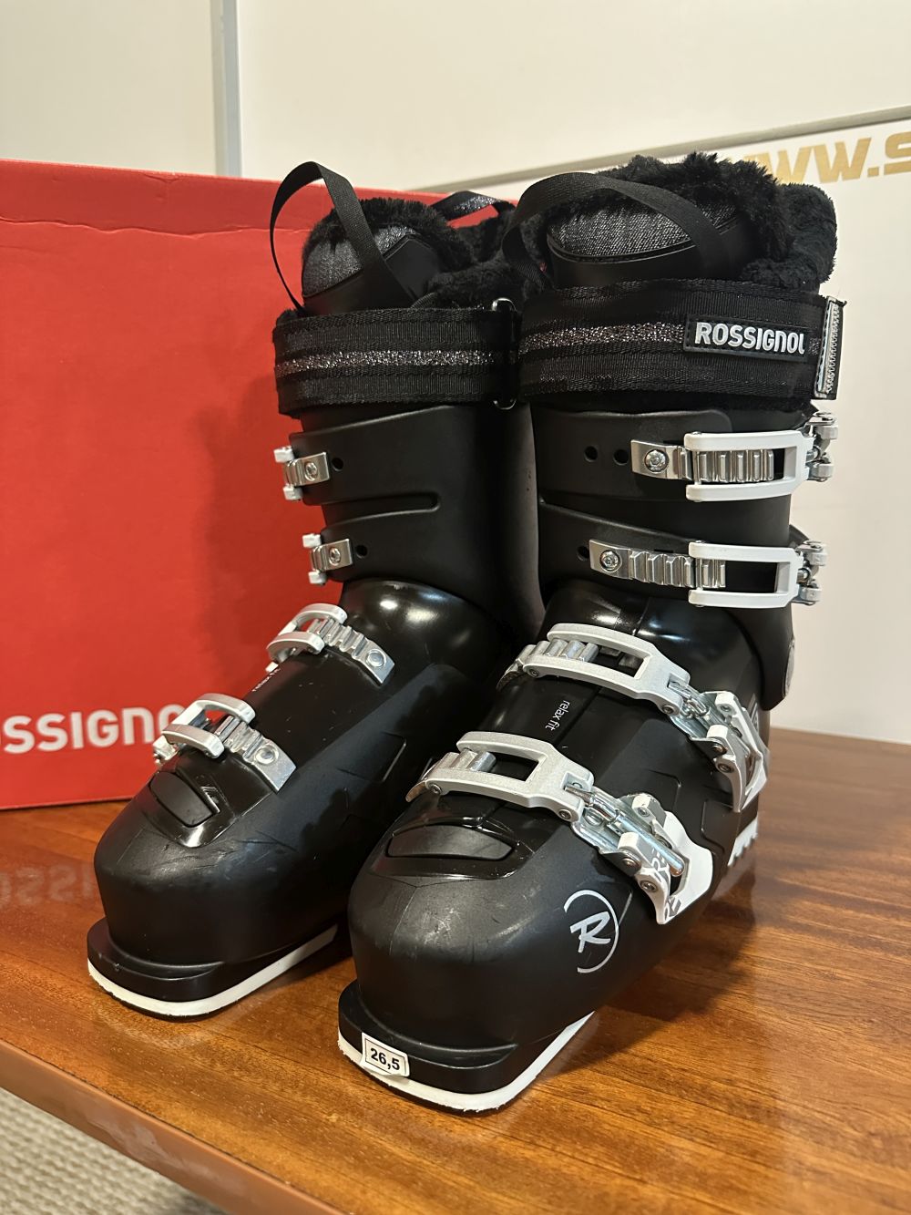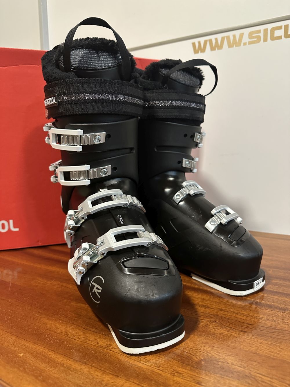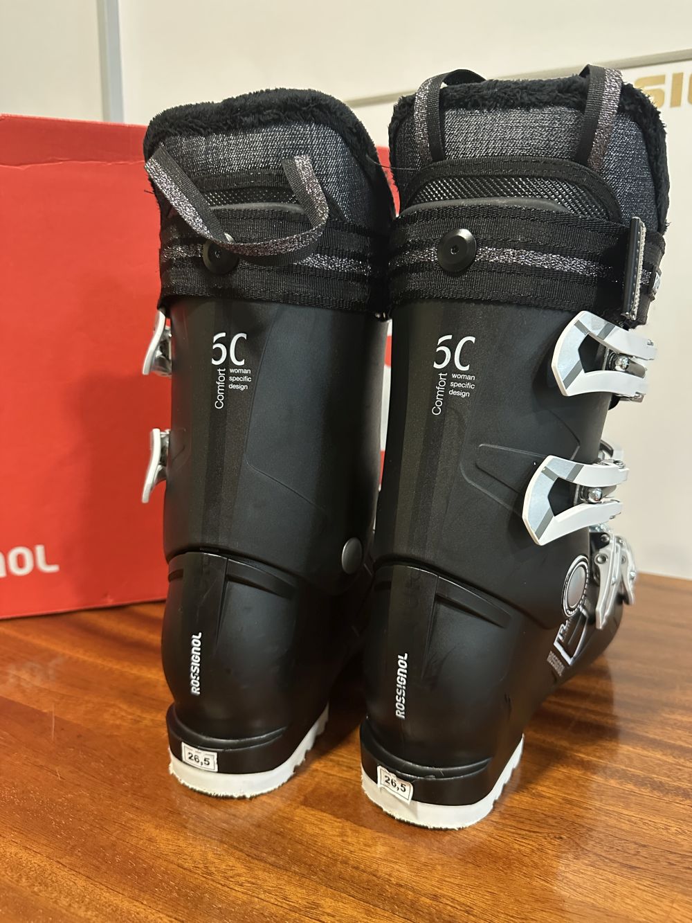 Új állapotú síbakancs dobozában.