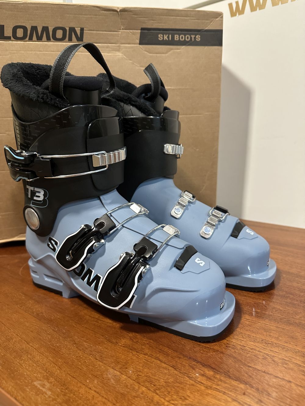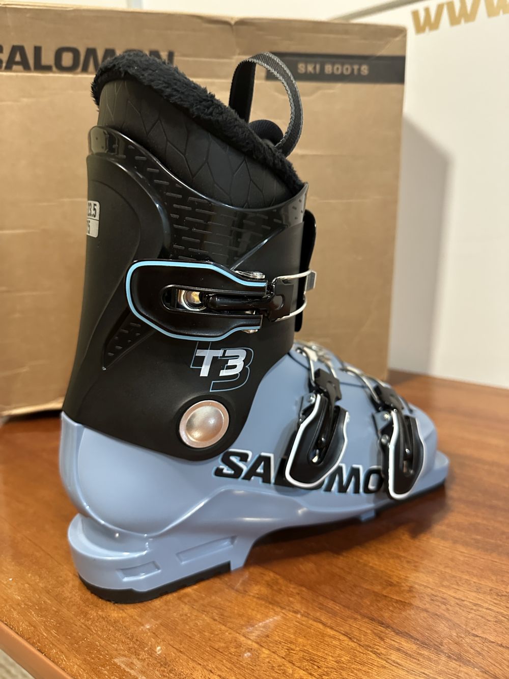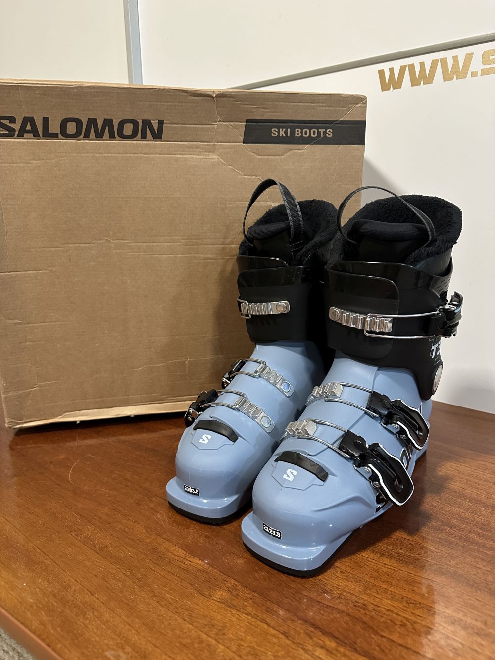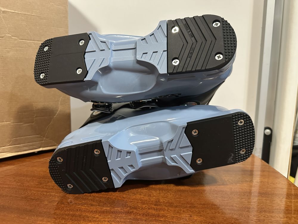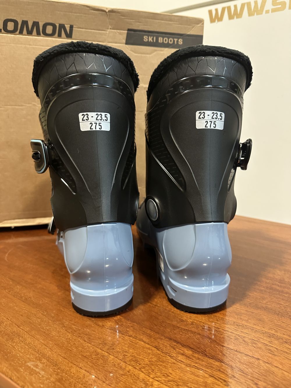 Új állapotú síbakancs gyári dobozában.