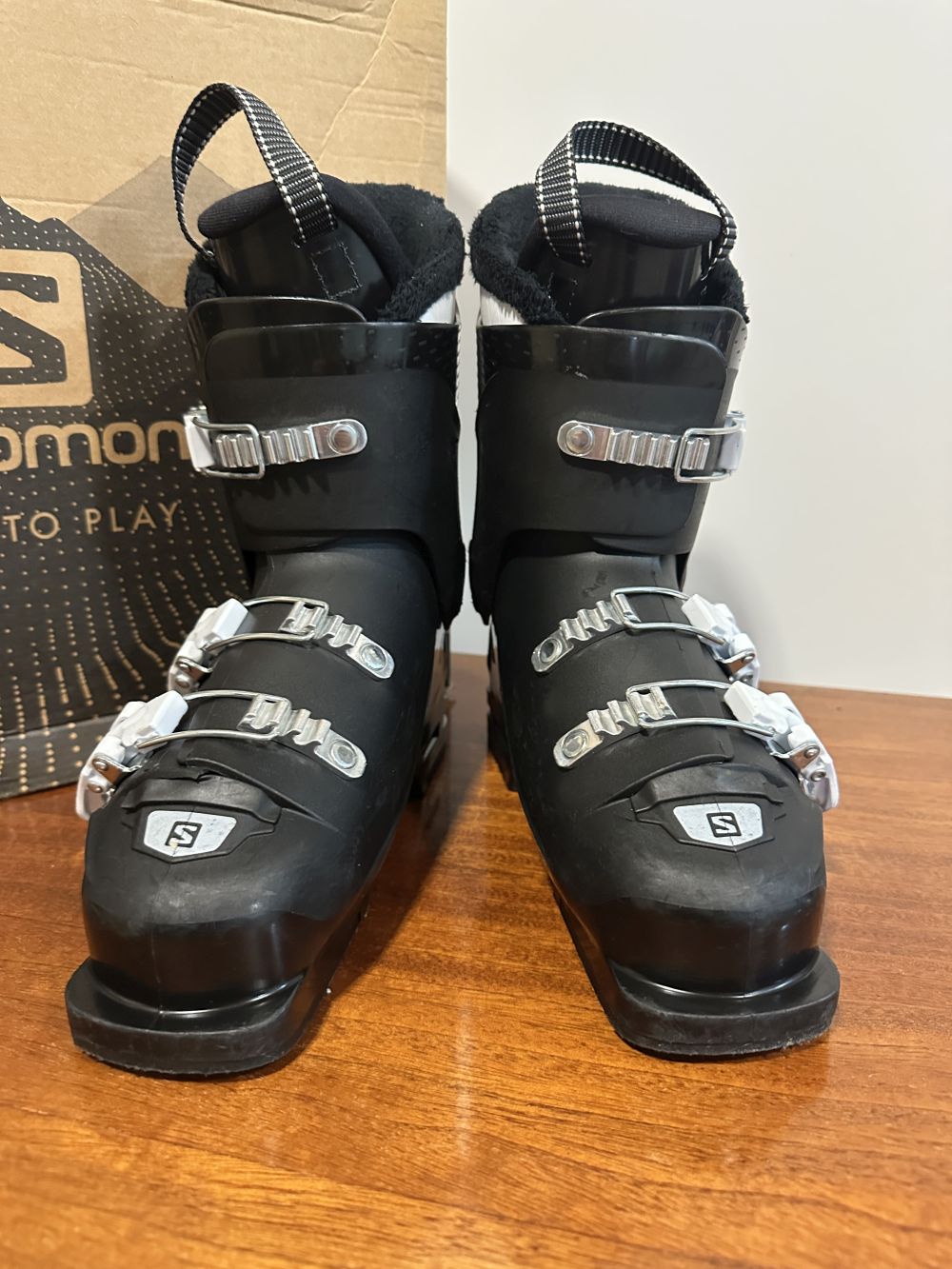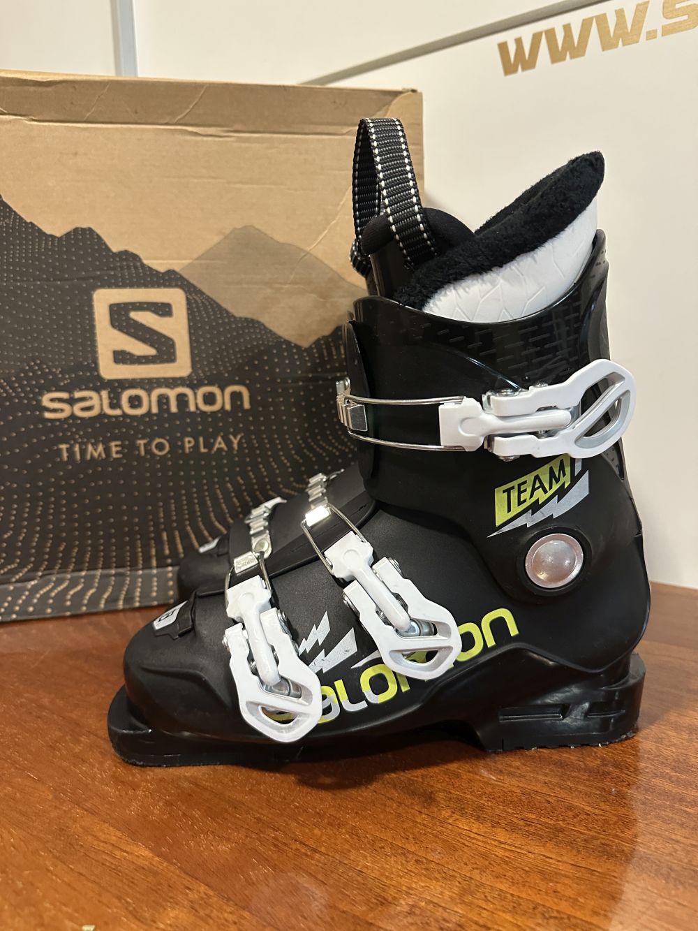 Újszerű állapotú síbakancs gyári dobozában.